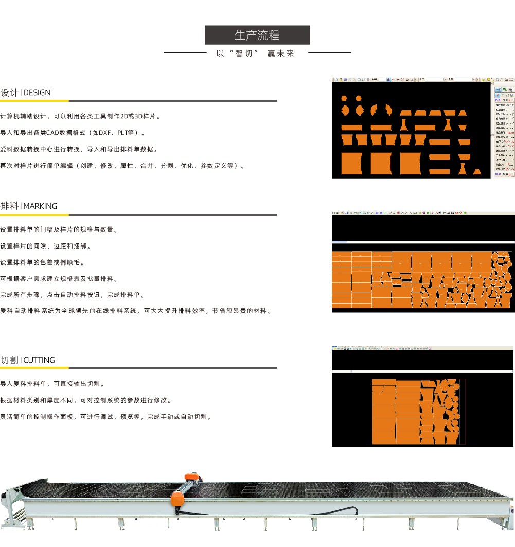 愛科生產(chǎn)的SC高速度大幅面自動化切割系統(tǒng),為單層和少量多層的定臺式切割系統(tǒng),它采用的運(yùn)動控制系統(tǒng),具有運(yùn)行速度快,精度高,穩(wěn)定性強(qiáng)等特點(diǎn),系統(tǒng)操作簡單,導(dǎo)進(jìn)版型文件就可以自...
